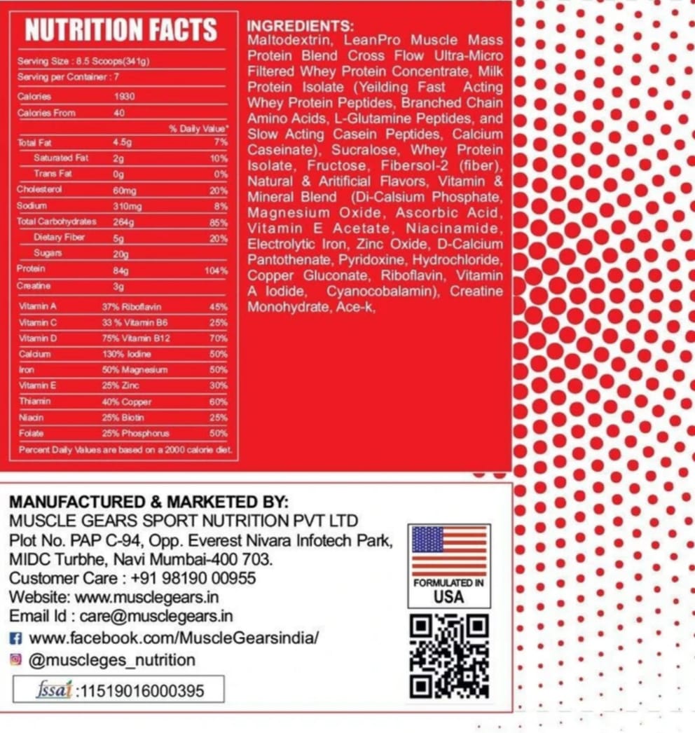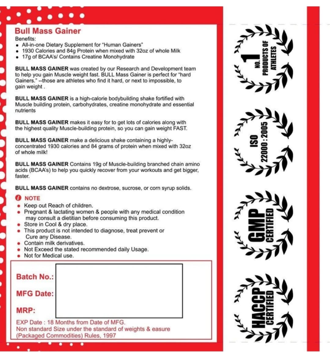 1. Weight Gain Supplement: Designed to support muscle growth and weight gain